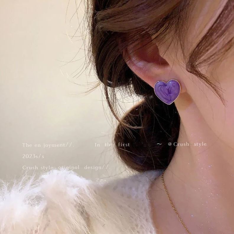 Add a dreamy touch to your style with our Super Fairy Taro Purple Heart Earrings, inspired by Korean fashion jewellery trends. These stunning earrings feature glossy purple heart charms set on a shiny golden base, blending playful charm with elegant sophistication.
